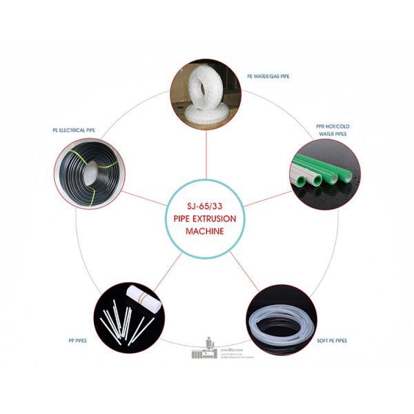 HSJ-65mm Single Screw Extruder This Extruder is designed specially for processing PP/HDPE Granules, either Virgin Granules or recycled scraps. The Extruder installed with 22kw, 30k, 37kw driving motor , according to the different pipe size, or thickness.